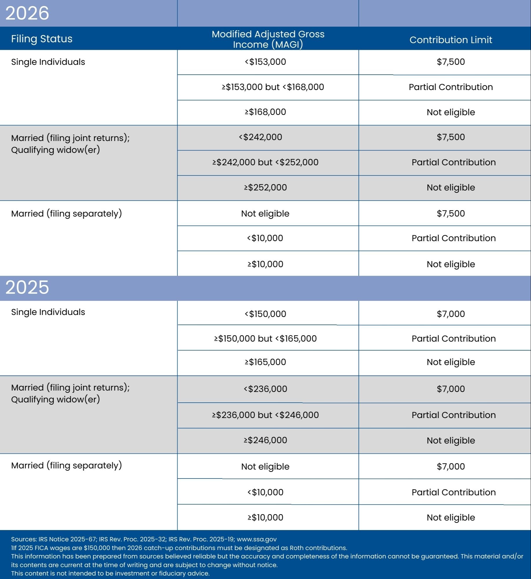 Income limits for Roth IRA eligibility are also adjusting upward, which may affect whether you can contribute directly — or whether strategies like Roth conversions are worth considering.